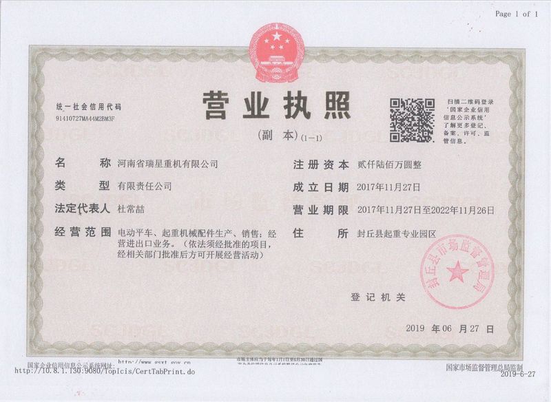 河南省瑞星重機有限公司 地 址:新鄉(xiāng)市封丘尹崗工業(yè)區(qū) 電 話:0373-8410803 0373-8413658 0373-8411991 0373-8411711